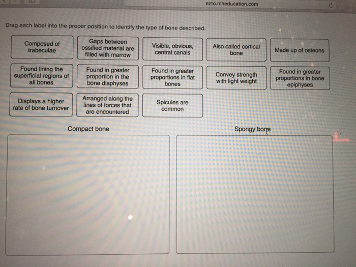 Quiz #4 Study Guide Flashcards | Quizlet Study with Quizlet and memorize flashcards containing terms like Drag each label into the proper position in order to identify the outcome of each condition on blood calcium., Label the skeletal system components in the figure with the terms provided., Place the items into the correct category of either spongy bone or compact bone. and more. Module One- Human Body & Chemistry of Life Flashcards - Quizlet Place each term or phrase in the proper position to identify the item or process being addressed. Drag each label into the proper box to indicate whether the scenario would increase or decrease the reaction rate.