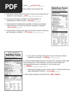 Nutrition Label Worksheet Answers - Nutrition Label... Nutrition Label Worksheet 1. 60 kcal x 21 serv = 1260 kcal 2. 10g CHO x 2 serv = 20g 3. 20g x 4kcal/g – 80 kcal 4. 1.5g/ serv * 2 serv = 3g * 9kcal/g = 27 kcal 5. 890mg/ serv * 2.5 serv/can = 2225mg 6. 2225mg – 1500mg = 725mg over 7. 25g Fiber (based on 2000kcal diet) * 20% = 5g; 1g fiber/ serv you would need 5 serv or 2 cans 8. 60kcal/serv * 5 …